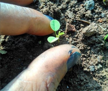 Separation of leaves, before mixing with lime.